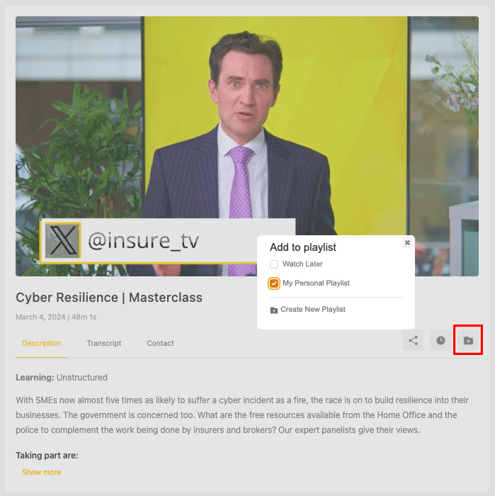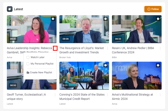You can create playlists featuring Insure TV content. These can be to create a playlist of videos you want to watch.
